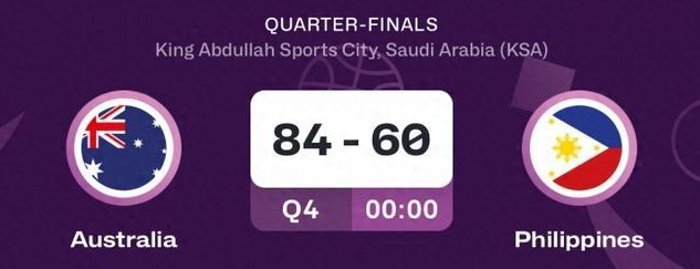 澳大利亚84-60碾压菲律宾,半决赛首张门票到手,中国队对韩国成关键战?